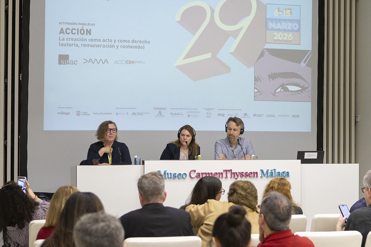 Este 8 de marzo –Día de la mujer–, el 29 Festival de Málaga ha contado con la Mesa redonda ‘La creación como acto y como derecho (autoría, remuneración y contenido)’, a cargo de ACCIÓN (Asociación de Directores y Directoras de España), en el Museo Thyssen de Málaga.